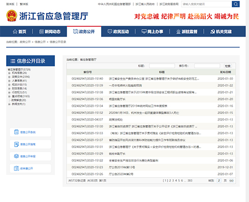 浙江省应急管理厅2019年度政府信息公开工作年度报告